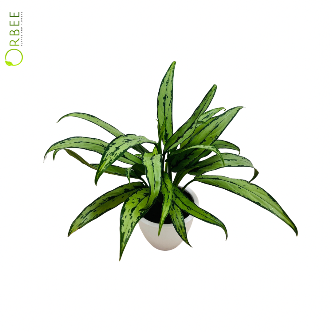 A graceful addition to your indoor garden, this Aglaonema 'Silver Bay' boasts elongated, lance-shaped leaves with elegant silver and green variegation. Planted in a modern fish bowl-style white planter, it brings a refreshing and contemporary vibe to your home or workspace.
