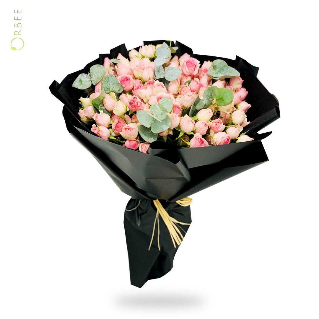 An exquisite composition of pink spray roses and lush green leaves, that perfectly captures the essence of grace and admiration. This bouquet is a versatile choice, suitable for birthdays, appreciations, congratulatory moments, or simply to brighten someone's day with a touch of elegance. Named after the feeling it evokes, this bouquet is a reminder of the remarkable moments that are made even more special with a touch of heartfelt admiration.