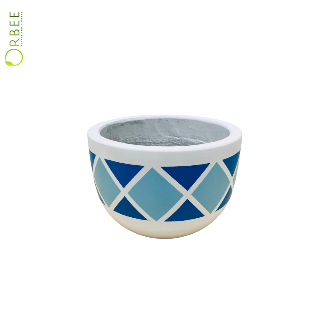 Bring a splash of color to your garden corner with the Azure Mosaic Round Planter. Adorned with a playful geometric diamond pattern in shades of blue and white, this hand-painted piece adds a touch of Mediterranean charm. Perfect for succulents, herbs, or bright blooms, this vibrant planter is a statement piece.