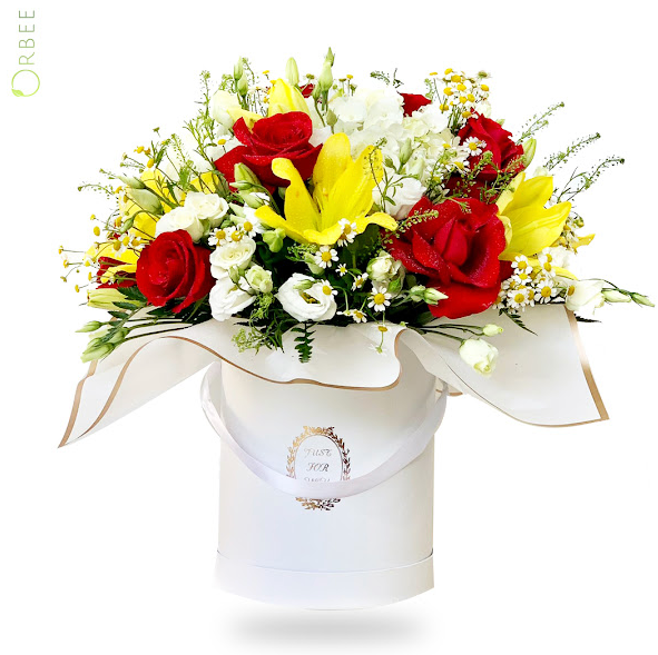 Experience the exquisite blend of nature's finest with our Mixed Flower Box Arrangement. This arrangement is a harmonious convergence of vibrant red roses, elegant lilies, delicate stoma, and charming tanacetum, creating a visual masterpiece that resonates with the beauty of life. From declarations of love to moments of appreciation, this arrangement is a versatile canvas for expressing a range of emotions. Customize your sentiment by including a personalized note, adding an intimate touch to your gift.