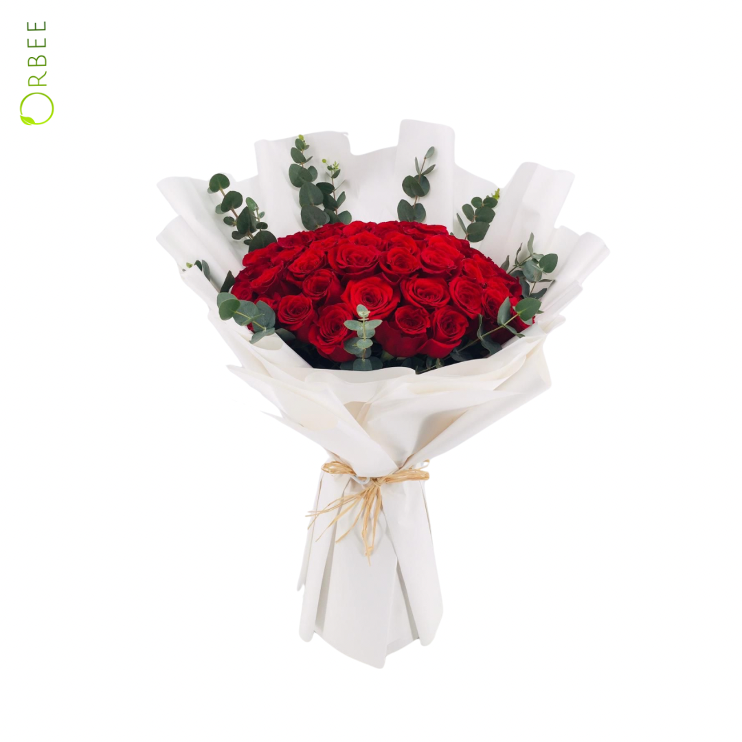 Experience the beauty and romance of Colors Of Love with our 50-piece set of red roses and green leaf fillers, perfectly wrapped for a stunning presentation. Elevate any occasion with these exquisite floral arrangements.