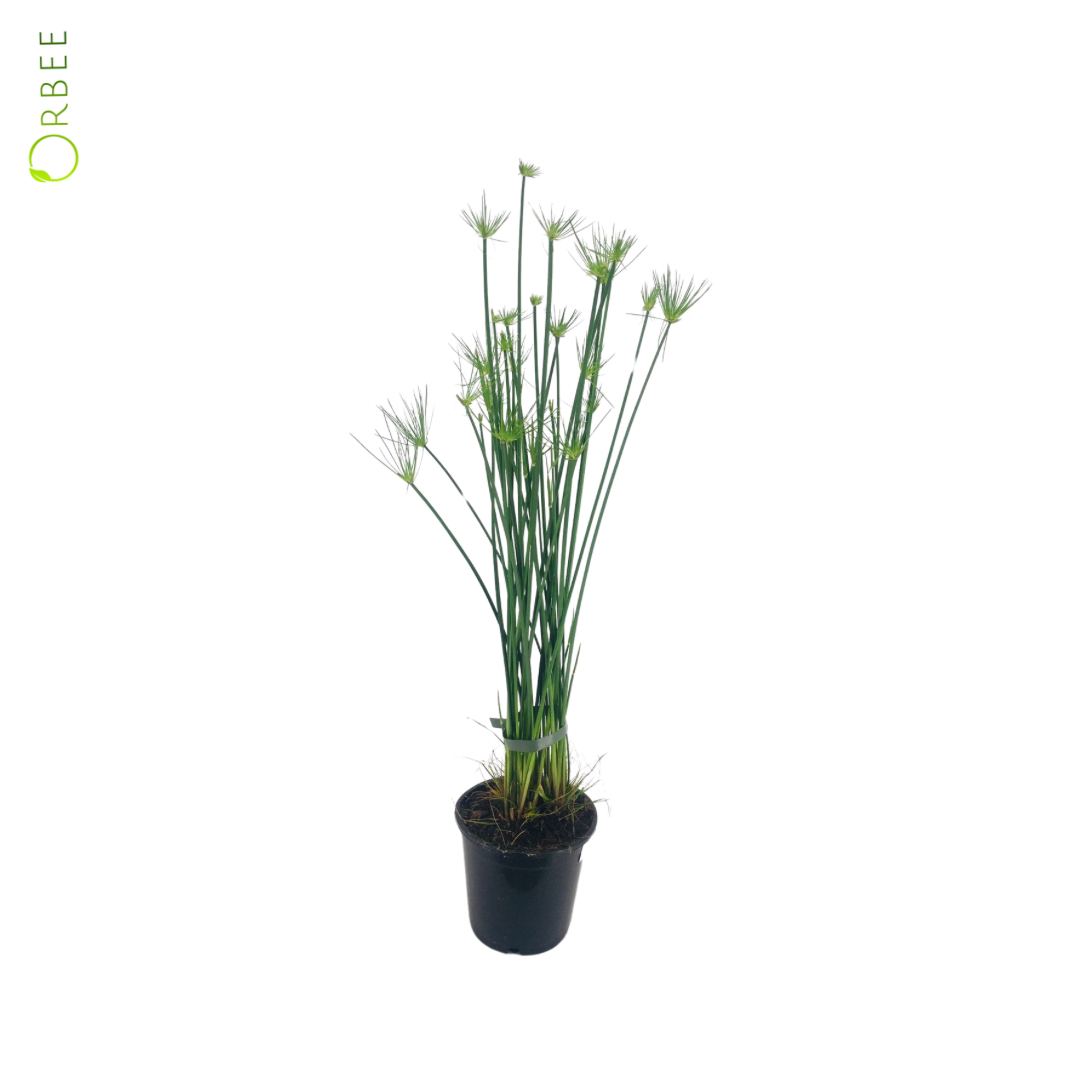 Cyperus haspan is also known as the 'Egyptian paper rush' . It is a non-hardy marginal pond plant which resembles a miniature papyrus. This grass-like sedge has mop-like heads of spikelets which are held high on triangular stems.