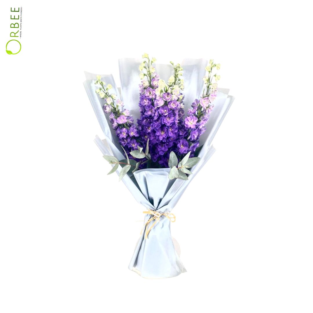 Embark on a journey of enchantment with our "Delphinium Dreams Bouquet," a delightful arrangement that blends the regal beauty of 4 majestic delphinium stems with delicate filler flowers, all embraced in an exquisite wrapping sheet.