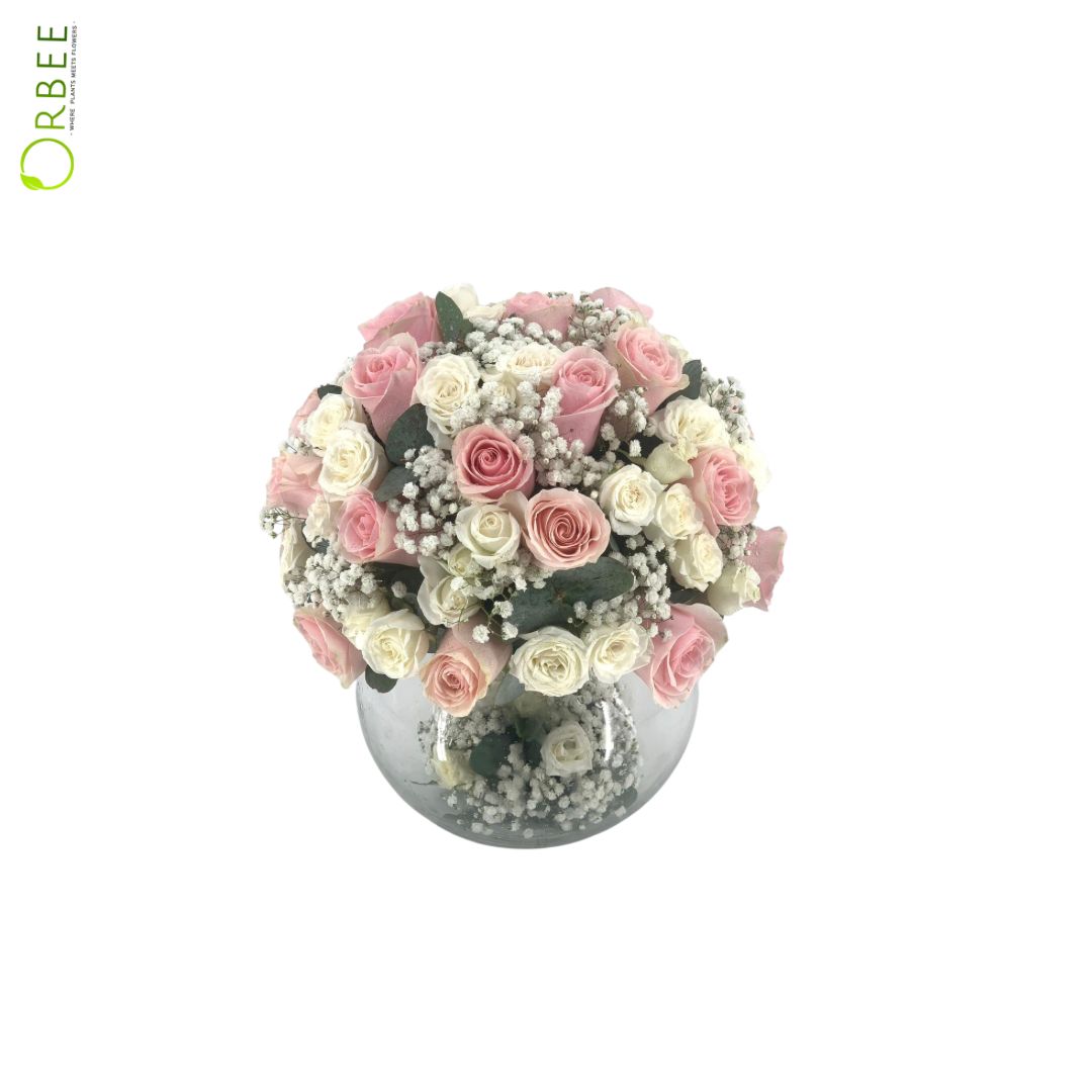 Bring an air of timeless romance into any space with our "Eternal Elegance Rose Bouquet." This opulent arrangement is a symphony of delicate blooms, showcasing the classic beauty of roses and the ethereal charm of baby roses, all harmoniously arranged in a crystal-clear glass vase.
