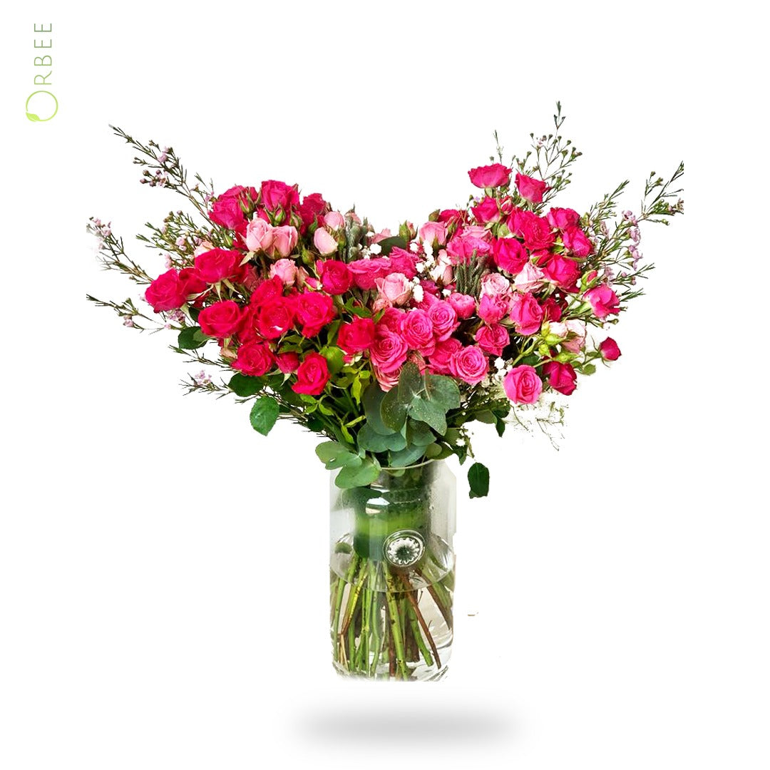 A harmonious blend of delicate spray roses, soothing wax flower, enchanting gypso accents, and fillers of eucalyptus touches thoughtfully nestled in a graceful glass vase. This arrangement captures the essence of understated elegance, making it a versatile choice for a variety of settings. Place it on your dining table for an understated centerpiece, on your office desk to inspire tranquility, or on your mantel to enhance your living space. Gift this arrangement to convey sentiments of beauty, charm, and tranquility.