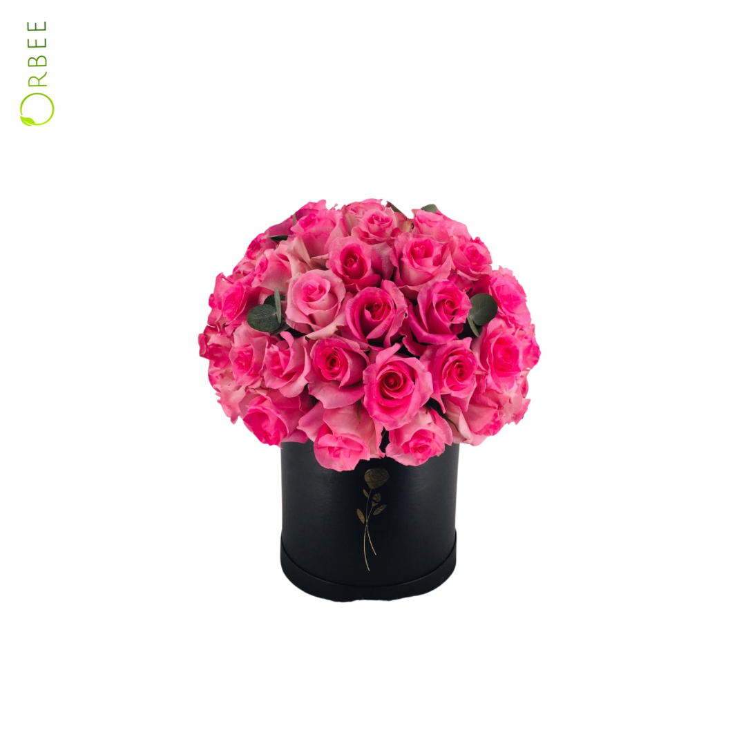 Experience a bouquet of endless love with Intense Love. This stunning arrangement includes 50 fragrant roses surrounded by vibrant green leaves and presented in a chic cylindrical flower box. Let the beauty of nature speak for itself.