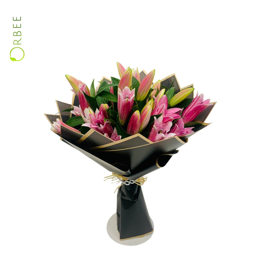 Immerse yourself in the timeless beauty of our "Pink Lilies" Flower Bouquet. This captivating arrangement showcases the delicate allure of pink lilies, creating a harmonious symphony of grace and elegance. Whether it's a birthday, anniversary, or simply a gesture of appreciation, the "Pink Lilies" bouquet adds a touch of splendor to any occasion.