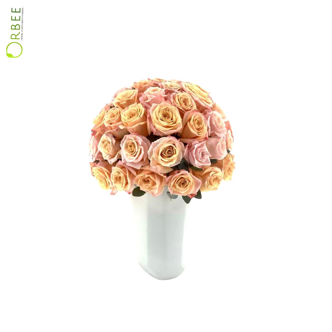 Indulge in the timeless allure of our "Roses in Bloom Grandeur" bouquet, an extravagant collection of 40 resplendent roses presented in an exquisite ceramic vase. This arrangement is a symphony of elegance and romance, designed to captivate the heart and enhance any space with its opulent beauty.